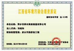 Jiangxi Province environmental pollution control qualification certificate