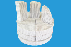 陶瓷波紋規(guī)整填料是用硬質(zhì)瓷構(gòu)成,主要成分粘土、石英、長石等經(jīng)特殊烘燒而成。其形狀是由許多具有相同幾何形狀的單元體一波紋片相互平行、又疊加組成。